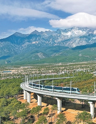 雪山、繁花與牧場(chǎng),構(gòu)成了一幅美麗畫卷,令人陶醉其中。“風(fēng)景太美了!”游客賴先生是第二次來(lái)云南麗江,這次旅行他體驗(yàn)了麗江雪山觀光火車。自2月12日開(kāi)通以來(lái),麗江雪山觀光火車迅速成為旅游界的新“爆款”。這列由我國(guó)自主研發(fā)的全球首列全景觀光山地旅游列車,以其獨(dú)特的設(shè)計(jì)和舒適的體驗(yàn),為游客帶來(lái)一場(chǎng)別具一格的雪山之旅,更成為連接麗江古城與玉龍雪山的“黃金紐帶”。