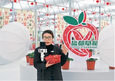 3月28日9點(diǎn),新民村的一座草莓大棚中,一場(chǎng)直播帶貨開(kāi)始了。