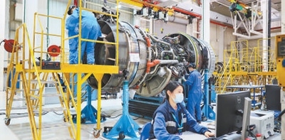 福建自貿(mào)試驗(yàn)區(qū)廈門片區(qū),航空維修基地的工程師在進(jìn)行發(fā)動機(jī)維修作業(yè)。