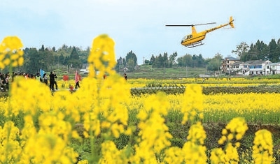 4月以來,四川省崇州市的30萬畝油菜花競相綻放,從空中俯瞰,將會帶來不一樣的感受。為此,當?shù)亻_通了“低空航線”,游客在半小時的低空飛行中,不僅可以俯瞰一望無際的油菜花海,還能欣賞附近錯落有致的民居庭院。此外,當?shù)剡€推出花海跳傘項目,將極限運動融入賞花,帶給游客別樣的體驗。