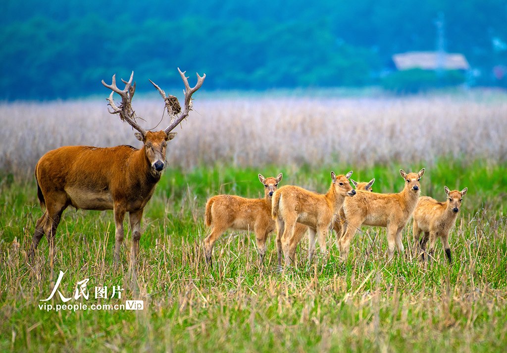 近年來,條子泥濕地生態(tài)環(huán)境越來越好,國家一級保護動物野生麋鹿超過400頭,今年自然產仔達50頭以上,種群數量得到有效恢復。孫家錄攝(人民圖片網)