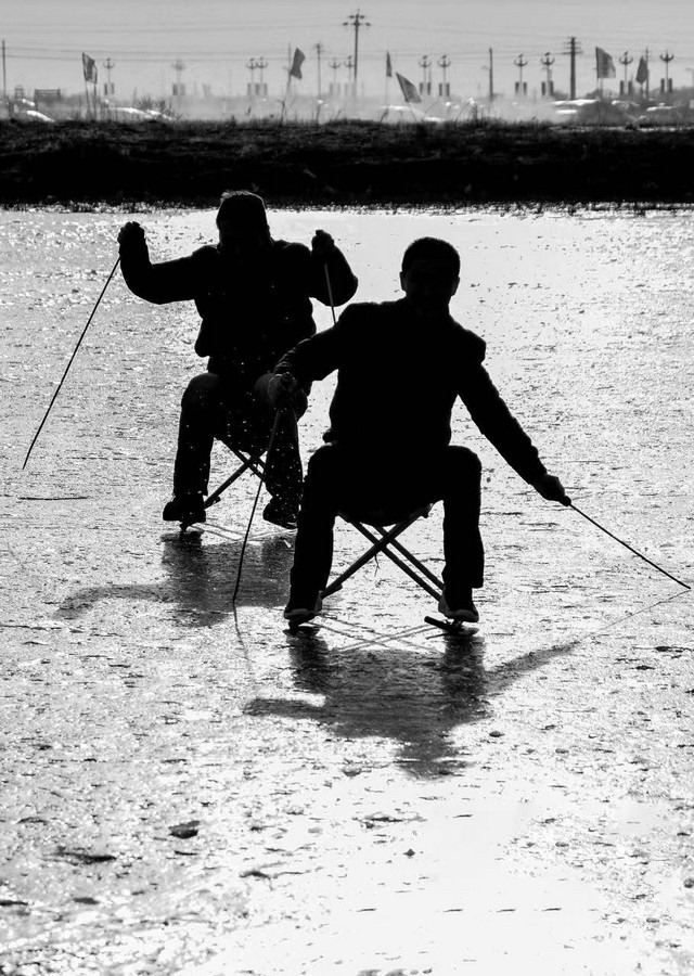 ?、俣冻怎r魚(yú);②冬釣。