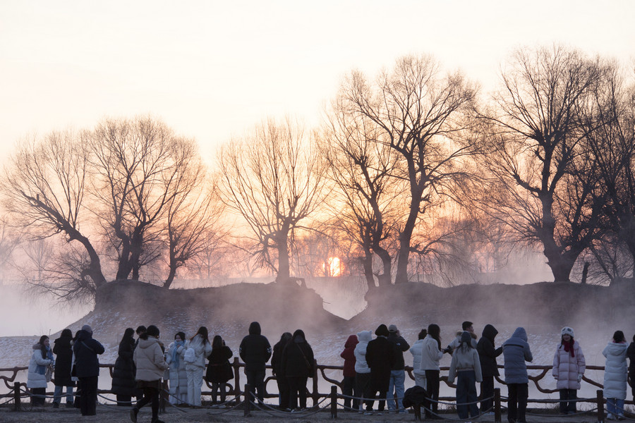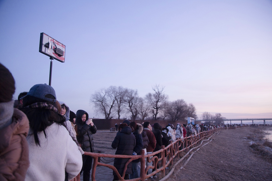 1月4日清晨,游客在呼和浩特“千島湖”圍觀