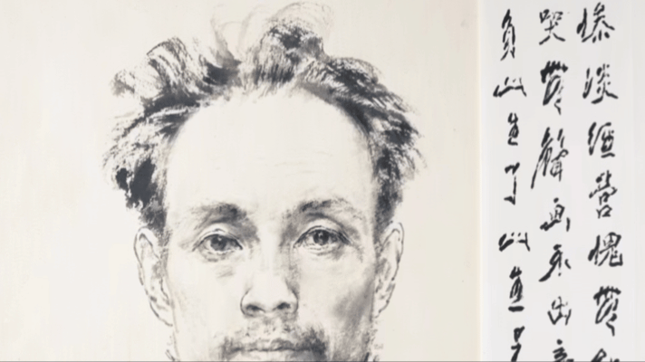 與病重時(shí)疲憊的狀態(tài)截然不同,王子武在畫作中刻畫自己的形象精神飽滿,飛揚(yáng)的發(fā)絲充滿朝氣。畫作《子武自寫》中,人物眼神堅(jiān)定,造型簡(jiǎn)潔、穩(wěn)定,充滿力量感。整幅畫作表現(xiàn)了王子武將生命奉獻(xiàn)給繪畫的自信和決心。