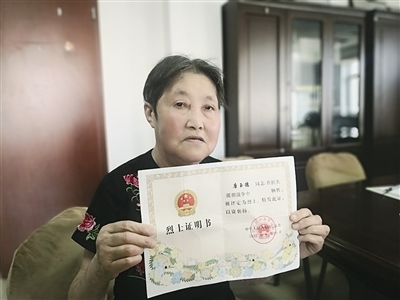 赫雅菊展示父親的烈士證明書(shū)