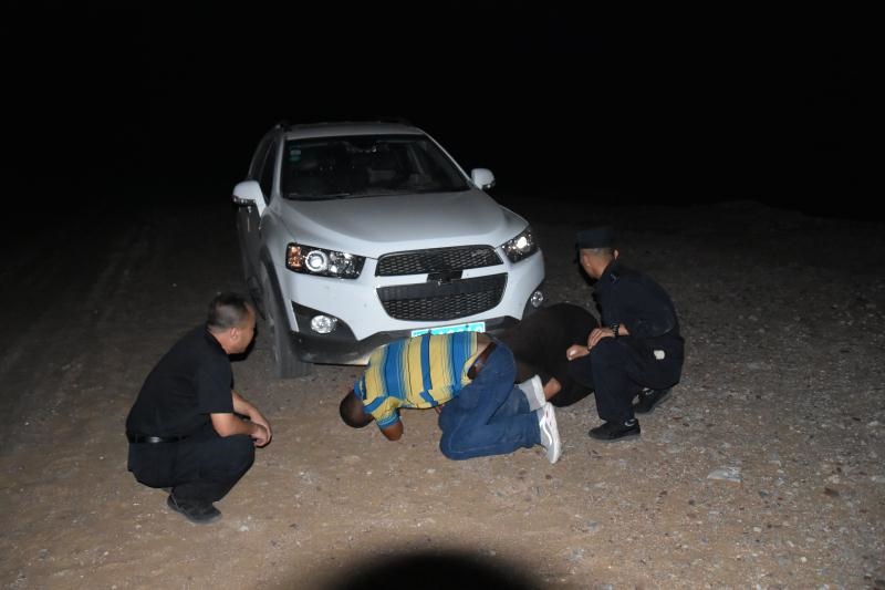 正當(dāng)二人漸漸失去希望的時(shí)候,當(dāng)晚10點(diǎn)10分,遠(yuǎn)處一道燈光閃過,原來,阿拉善邊境管理支隊(duì)溫圖高勒邊境派出所民警下鄉(xiāng)走訪正好路過。得知二人情況后,民警立即展開救援,一路迅速找出隨身攜帶的干糧、礦泉水為二人補(bǔ)充體力,一路找出牽引繩對被困車輛開展救援,經(jīng)過6個(gè)小時(shí)的拖拽,終于在凌晨4點(diǎn)將兩名群眾安全帶到了派出所。