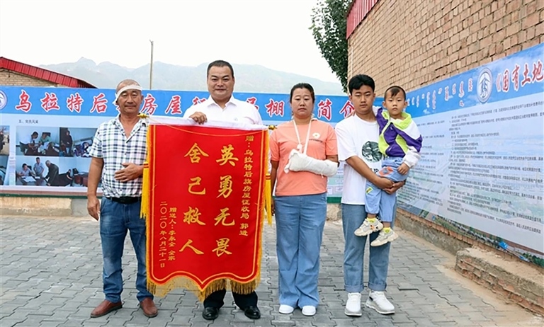 “太謝謝你了,你是我們一家四口的救命恩人,我們一輩子都會(huì)感激你。”眼中飽含熱淚的李永全緊緊握著郭進(jìn)的手說(shuō)。8月21日一大早,李永全一家就趕到了郭進(jìn)的工作單位后旗房屋征收局,將一面寫(xiě)有“英勇無(wú)畏舍己救人”的錦旗,送到了恩人郭進(jìn)的手中。