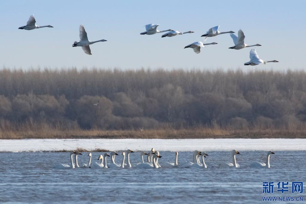 小天鵝翔集科爾沁國(guó)家級(jí)自然保護(hù)區(qū)。(王永生 攝)