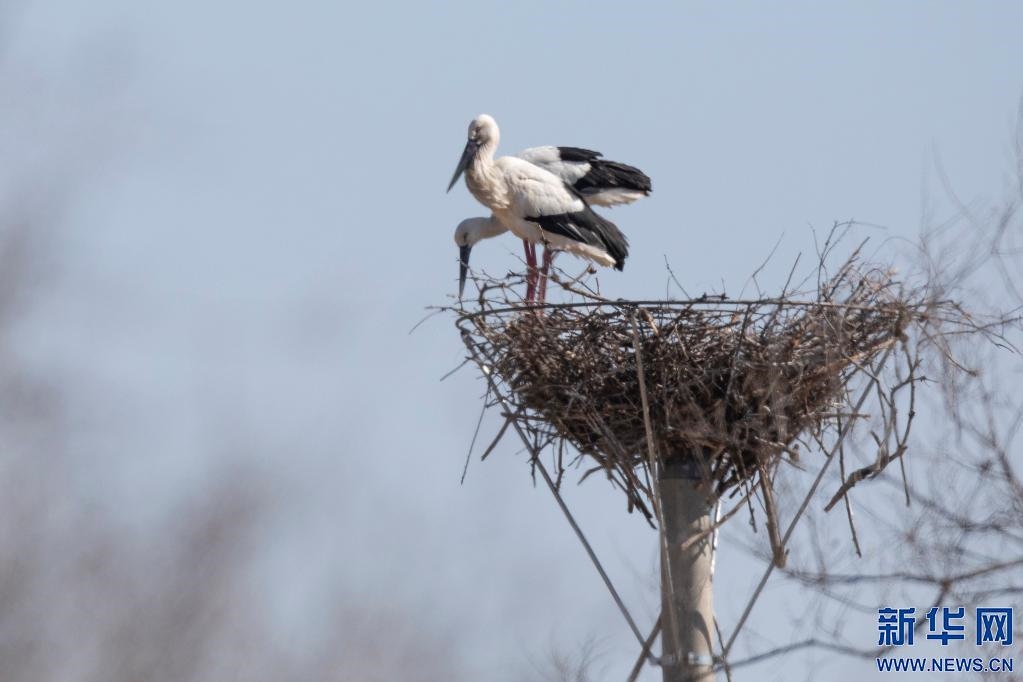 “我們?cè)诓煌牡攸c(diǎn)安置了十幾個(gè)人工巢,目前我們發(fā)現(xiàn)一對(duì)東方白鸛已經(jīng)在人工巢上筑巢,為繁殖做著準(zhǔn)備。這說明人工輔助的手段很重要,接下來會(huì)有更多的東方白鸛在這里筑巢繁殖,恢復(fù)20多年前的往日景象。”科爾沁國(guó)家級(jí)自然保護(hù)區(qū)管理局副局長(zhǎng)于有忠欣喜地說。