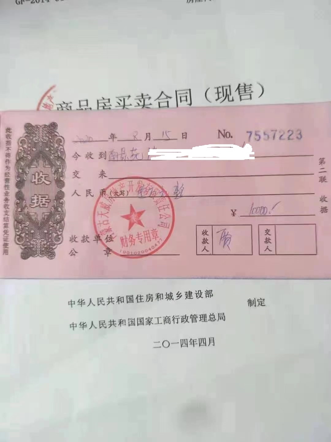 收據(jù)上并沒(méi)有注明收的10000元是啥費(fèi)