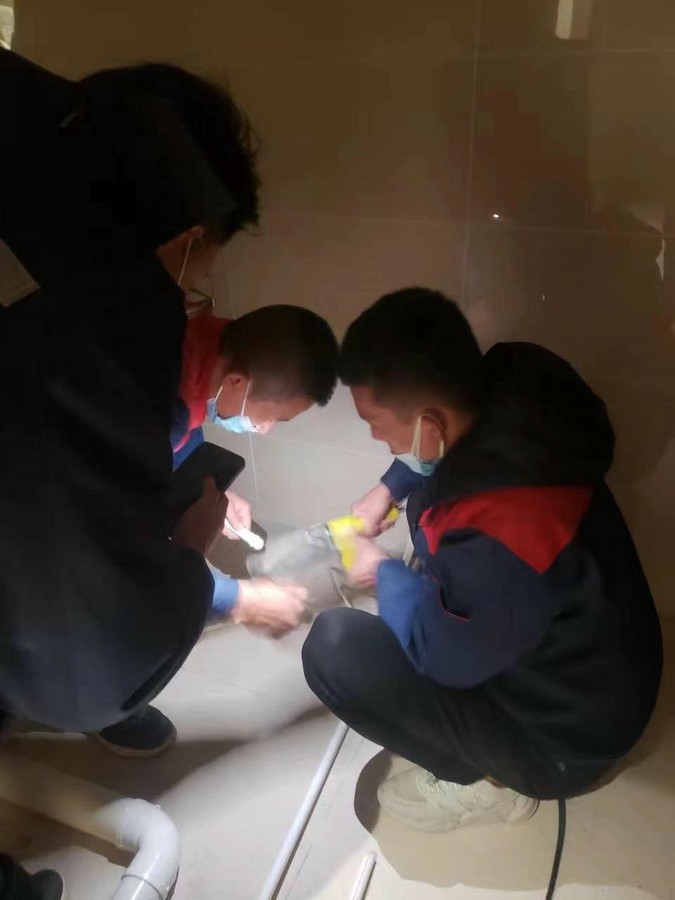 深夜,氣溫突降,冷風(fēng)毫不留情地灌入現(xiàn)場施工人員的衣服里,但無一人松勁、無一人退縮。由于材料分布范圍較大,只見身穿紅、藍工作服的他們徒步穿梭于各樓層之間,一刻不停地搬運管件及材料、安裝設(shè)備。因疫情管控不能到現(xiàn)場的同事則堅持利用通訊工具提供遠程技術(shù)支持,為前線答疑解惑。方艙醫(yī)院建設(shè)屬于應(yīng)急工程,時間緊、任務(wù)重,加之現(xiàn)場材料缺乏,施工人員只能就地取材,爭分奪秒的同時,“突擊隊”表現(xiàn)出了高度的專業(yè)性,迅速、細致、高效地進行管道鋪設(shè)和熱水器安裝……凌晨4點,在現(xiàn)場全體施工人員的共同努力下,方艙醫(yī)院水暖安裝工作順利完成。