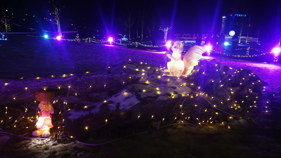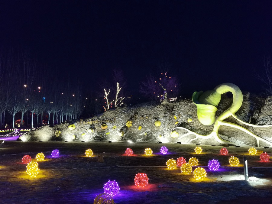 串燈、月球燈、抱樹(shù)燈、地插花、氣球燈點(diǎn)綴,搭配動(dòng)物造型燈,整個(gè)小草公園生機(jī)勃勃?!翱茨沁呥€有雪人”,小朋友的歡呼聲打破了夜晚的寂靜。
