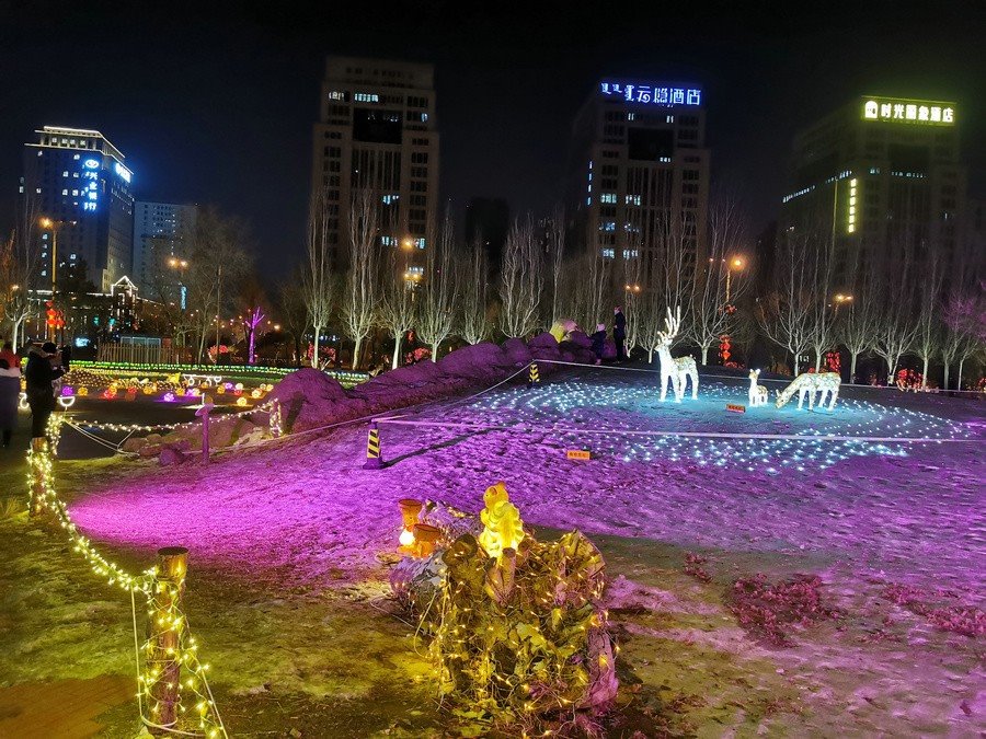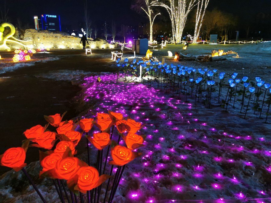 用玫瑰花燈組成的“我愛(ài)呼和浩特”字樣格外引人注目,象征著我們要熱愛(ài)我們的城市,共同打造一個(gè)美好、有愛(ài)、有溫度的呼和浩特。