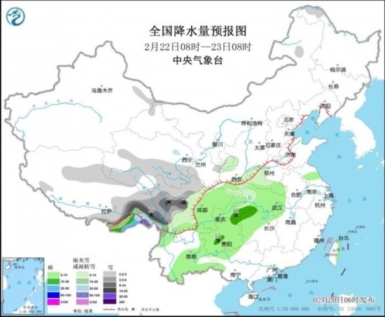 20日至22日,西北地區(qū)東部、青藏高原東部等地有小到中雪或雨夾雪,局地大雪或暴雪;西南地區(qū)東部、江漢、江南西部等地有小雨,局地中雨。