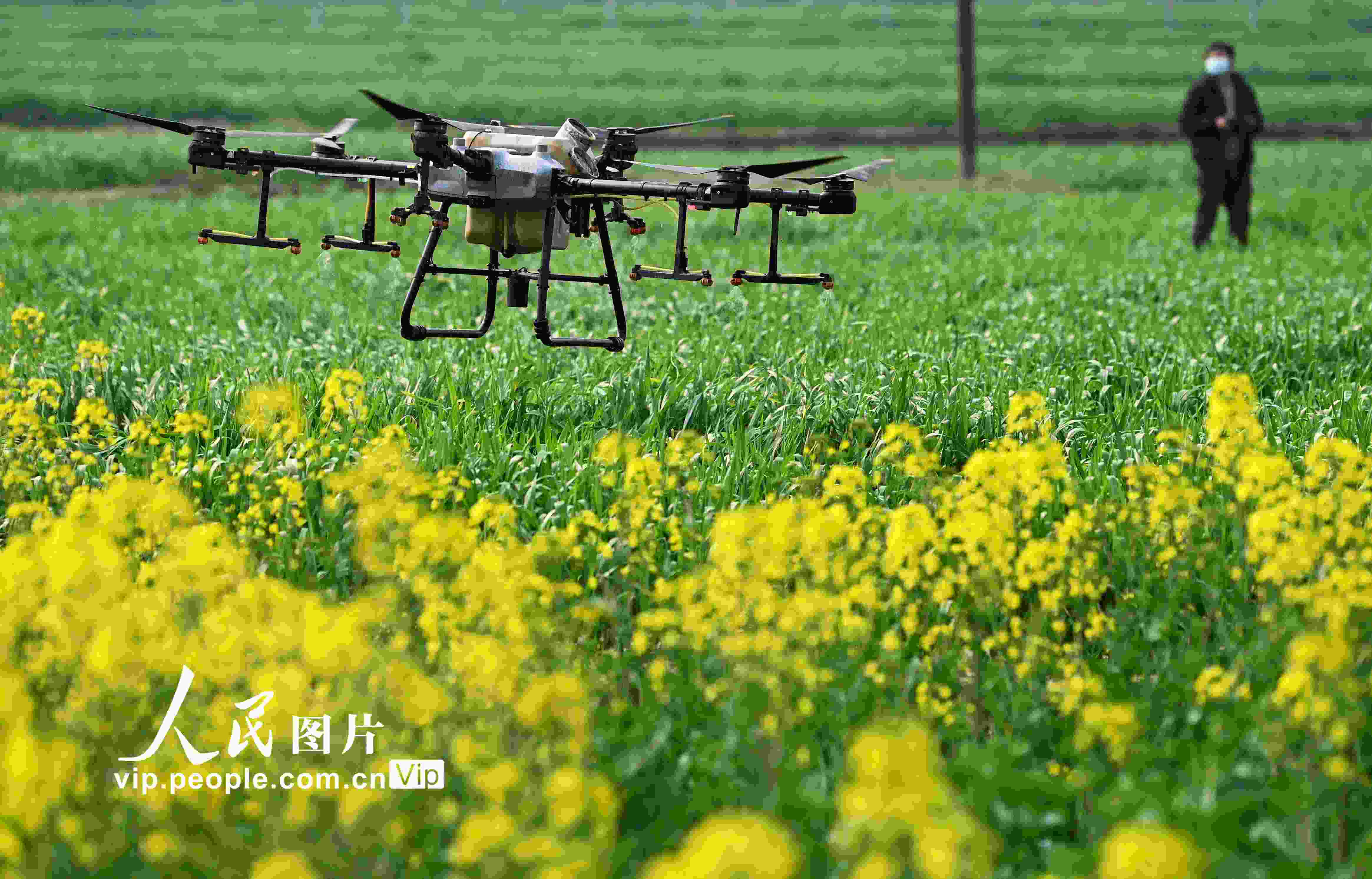 2023年2月25日,四川省南充市蓬安縣睦壩鎮(zhèn)武勝村,工作人員操控植保無人機(jī)在麥田噴灑農(nóng)藥。劉永紅攝(人民圖片網(wǎng))
