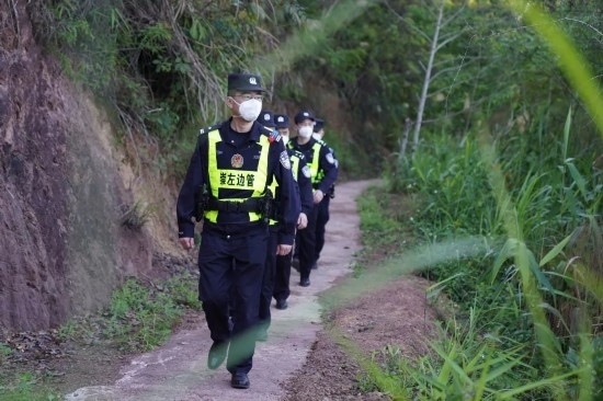2021年3月,黃日所在的專案組掌握到一個重要信息,一個運(yùn)送人員非法入境的犯罪團(tuán)伙正在崇左天等縣秘密轉(zhuǎn)運(yùn)人員。“必須要把這伙犯罪分子裝進(jìn)‘袋子’里!”黃日和戰(zhàn)友們通過縝密偵查,最終決定在天等縣和大新縣接壤的一段窄路上設(shè)伏。