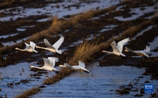 3月20日,在內蒙古自治區(qū)呼和浩特市托克托縣黃河沿岸,幾只天鵝在空中飛翔。