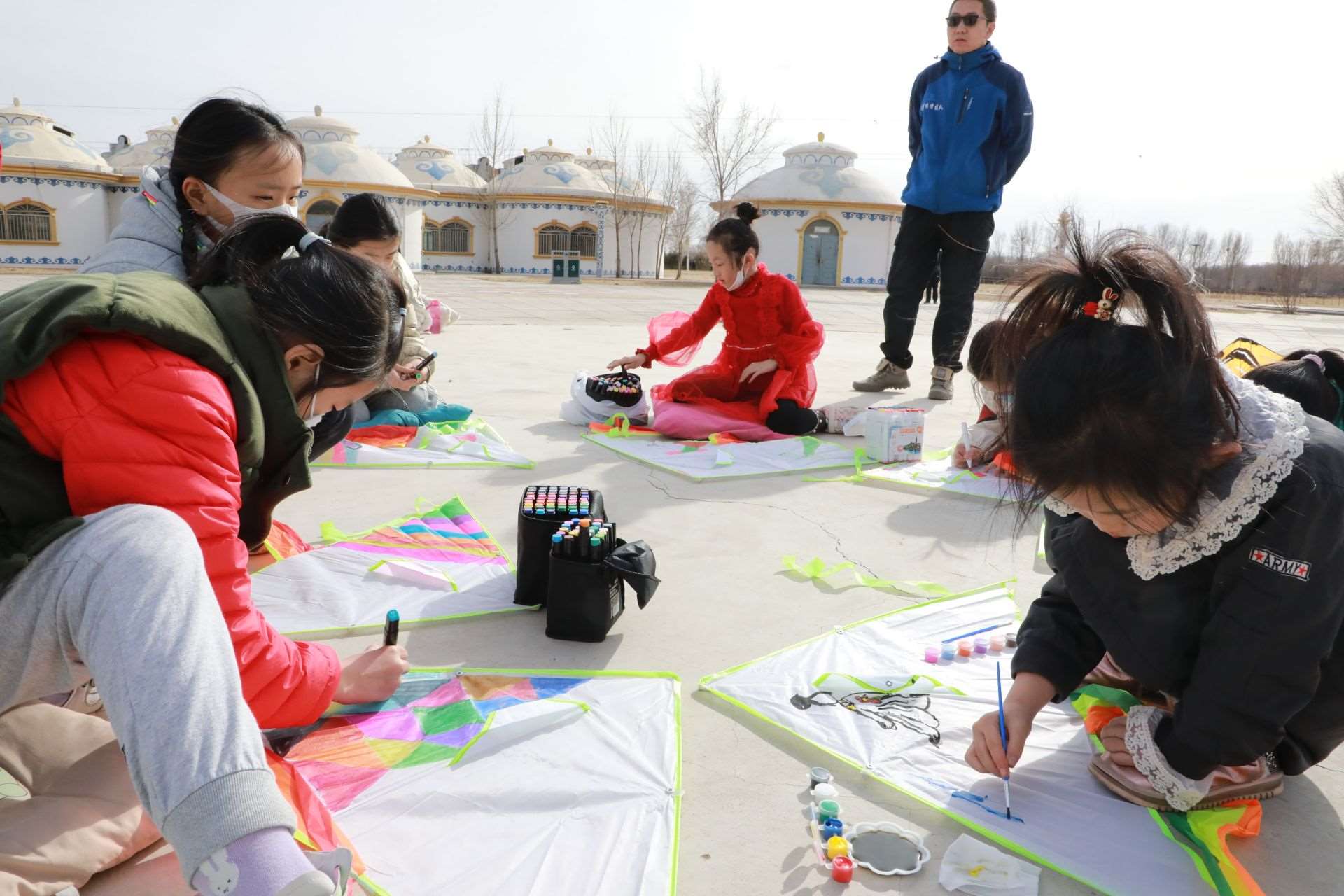 活動(dòng)現(xiàn)場(chǎng),呼和浩特市風(fēng)箏協(xié)會(huì)還特地準(zhǔn)備了20個(gè)空白風(fēng)箏,讓孩子們充分發(fā)揮想象力,動(dòng)手繪制自己喜歡的圖案。沐浴著溫暖的春光,小記者們拿出事先準(zhǔn)備好的水彩筆或者顏料,或趴或坐,認(rèn)真構(gòu)思,有的在風(fēng)箏上畫(huà)上了粉色的郁金香,有的畫(huà)上了振翅飛舞的蝴蝶,有的畫(huà)上了美麗的白雪公主,還有的涂鴉上喜歡的色塊,他們用五彩斑斕的顏色點(diǎn)綴創(chuàng)意,裝點(diǎn)自己喜歡的風(fēng)箏。一個(gè)小時(shí)的功夫,一個(gè)個(gè)獨(dú)具創(chuàng)意的風(fēng)箏在小記者們的巧手繪制中完成了。在郝偉老師的指導(dǎo)下,小記者們把風(fēng)箏安裝好,接上線,舉行了一場(chǎng)小型風(fēng)箏比賽?!巴?,成功了,起飛了!”只見(jiàn)數(shù)十只色彩各異的風(fēng)箏隨風(fēng)飛上天空,你爭(zhēng)我趕,越飛越高,小記者們?nèi)滩蛔“l(fā)出歡呼聲,臉上洋溢著開(kāi)心地笑容。