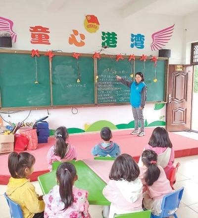 有著十幾年幼兒教育經(jīng)驗(yàn)的劉蓮娟,就這樣被村里推薦為童伴媽媽。同時(shí),她還是螺溪鎮(zhèn)一家幼兒園的老師,住在鎮(zhèn)里。每到周末,她便騎上電動(dòng)自行車,往返于村鎮(zhèn)之間,每周在“童心港灣”開(kāi)展10多個(gè)小時(shí)的親情連線、閱讀陪伴、文體項(xiàng)目、家訪校訪等活動(dòng)。