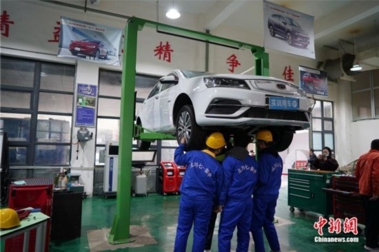 學(xué)生們正在老師指導(dǎo)下進行汽車維護保養(yǎng)、機械故障診斷等操作。中新網(wǎng)記者 劉湃 攝