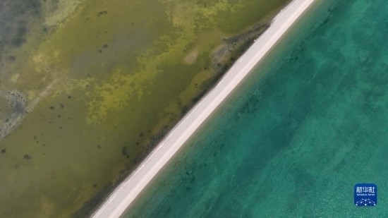 這是4月15日拍攝的青海湖一角(無人機照片)。