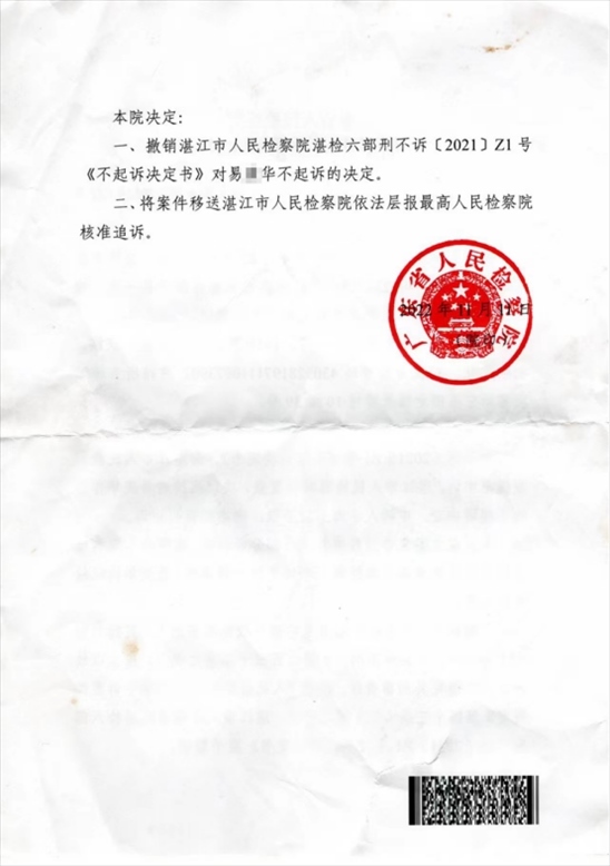 ·廣東省檢復查“潛逃27年命案嫌犯被不起訴”:撤銷,報最高檢核準追訴。