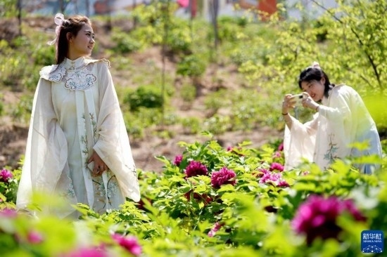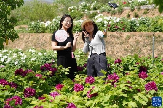4月16日,游客在白臺(tái)峪村牡丹農(nóng)業(yè)產(chǎn)業(yè)園拍照游玩。
