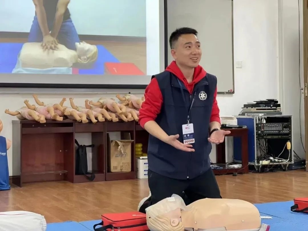 沈俊在救護培訓課上講解知識。浙江省紅十字會供圖