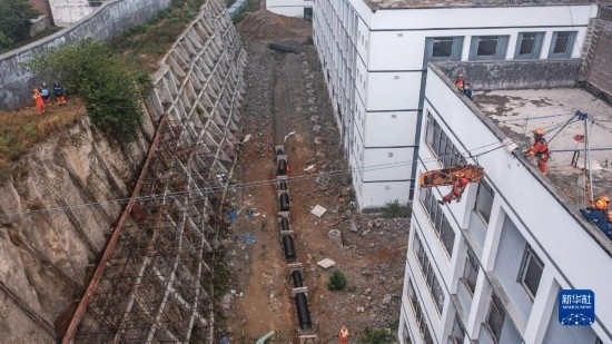 六盤水消防救援支隊(duì)隊(duì)員在打鉆孔(5月11日攝)。