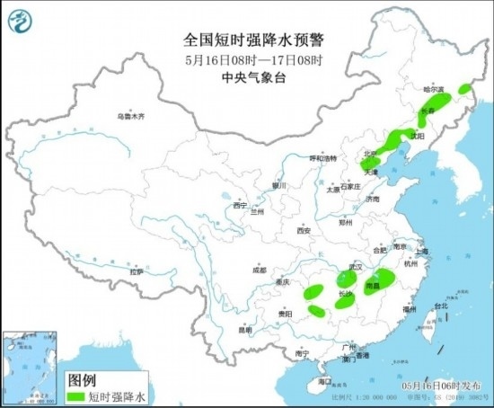 16日至17日,江漢南部、江南大部、華南北部等地有中到大雨,局地暴雨;東北地區(qū)、華北東部有小到中雨,部分地區(qū)大雨。預(yù)計5月16日08時至17日08時,內(nèi)蒙古東南部、吉林中部、遼寧中西部、河北中北部、北京、天津、湖南北部等地的部分地區(qū)將有8-10級雷暴大風(fēng)或冰雹天氣,局地風(fēng)力可達(dá)11-12級;黑龍江東南部、吉林中部、遼寧中西部、河北中北部、北京東部、天津、湖北東南部、湖南、江西中北部等地的部分地區(qū)將有短時強(qiáng)降水天氣,小時雨量20-40毫米,局地可達(dá)50毫米以上。預(yù)計,強(qiáng)對流的主要影響時段為今天午后至前半夜。中央氣象臺5月16日06時發(fā)布強(qiáng)對流天氣藍(lán)色預(yù)警。