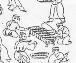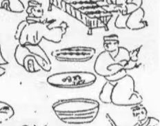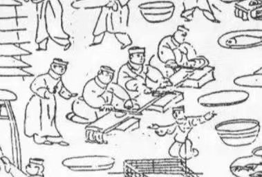 1967年春,在峽山出土了一塊石刻,描述了東漢北海都鄉(xiāng)安持里的孫家大院里,40多位家廚正在準(zhǔn)備一場(chǎng)盛宴。其中最引人注目的是,3位家廚正在割肉,4位家廚正在串簽、扇風(fēng)、烤串,一套動(dòng)作下來(lái)行云流水,從圖中看去,和如今的烤串已頗有幾分相似。