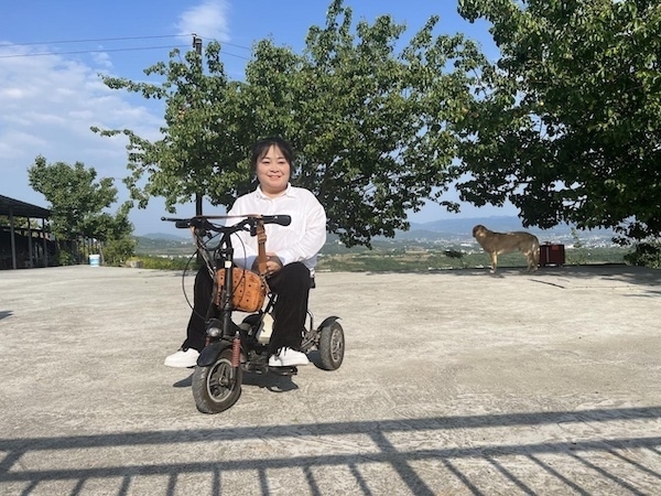 雖然每天需要在輪椅上生活,但李丹并不受限于此。因身體原因無法到學校讀書,她就在家自學,每天翻字典,一個字一個字地去記;銷售有問題,12歲時她就讓父親把自己帶到菜市場,用真誠的微笑和陌生人拉近距離,打開銷路;為給桃子設計獨一無二的包裝,與漢濱區(qū)殘聯(lián)溝通后,她騎著電動輪椅坐高鐵前往西安學習攝影和畫畫;山路陡峭,輪椅不方便上下山,她就去考了C5駕照,免去父親背她走路的辛勞。面對疾病的糾纏,李丹始終保持積極的心態(tài):“我希望自己的人生是不斷突破的?!?/p>