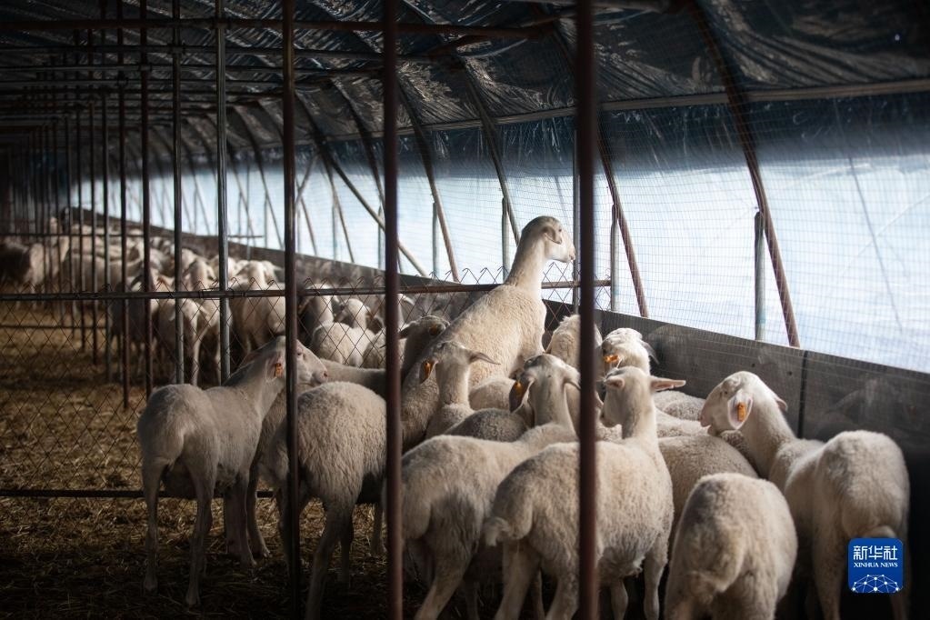 5月20日,在伊春森工集團發(fā)酵床生態(tài)養(yǎng)殖示范區(qū)內(nèi),湖羊準備進食。