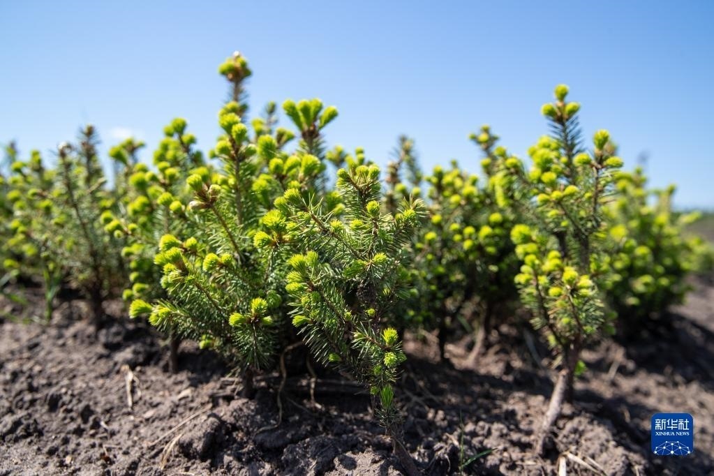 這是5月24日拍攝的伊春森工集團上甘嶺林業(yè)局公司溪水林場內(nèi)栽種的紅松樹苗。