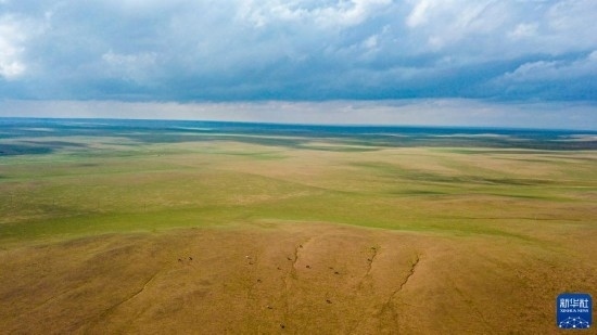 這是5月30日拍攝的內蒙古錫林郭勒盟蘇尼特右旗境內的草原風光(無人機照片)。
