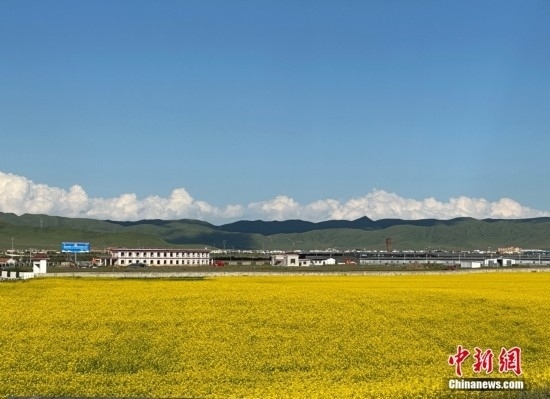 行駛途中,微風(fēng)送來陣陣清涼。從車窗向外望去,高低起伏的沙丘已被樟子松、側(cè)柏覆蓋,披上了片片新綠,間或有盛開的黃色檸條花點(diǎn)綴其間,如繁星點(diǎn)點(diǎn)裝扮著這片土地。