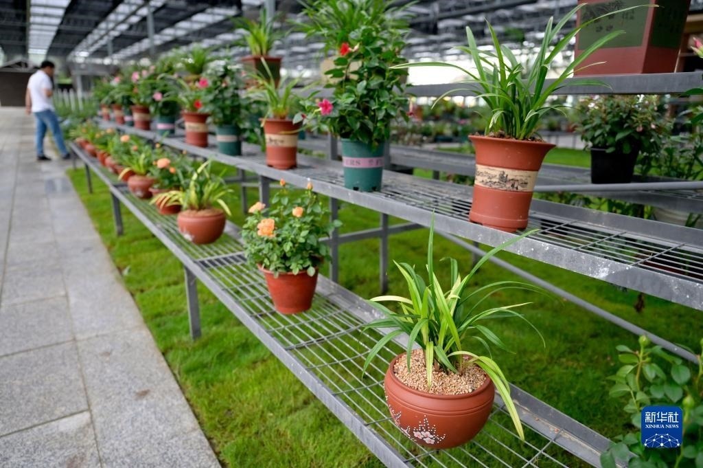 6月8日在浙江省紹興市柯橋區(qū)漓渚鎮(zhèn)棠棣村拍攝的蘭花數字工廠一景。新華社記者 才揚 攝