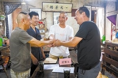 考慮鄉(xiāng)里鄉(xiāng)親,雙方都不愿對簿公堂,但又涉及合同履行中是否存在瑕疵交付的法律問題,老邵迅速將情況反饋給共享法庭。為盡快化解矛盾,當(dāng)天下午,法官趕到現(xiàn)場指導(dǎo)人民調(diào)解員,并與茶館的鄉(xiāng)賢一同開展調(diào)解。經(jīng)過法官的普法、調(diào)解員的說理,雙方厘清各自責(zé)任之后,達成調(diào)解協(xié)議。在茶館輕松和諧的氛圍里,兩個老朋友解開心結(jié),握手言和。