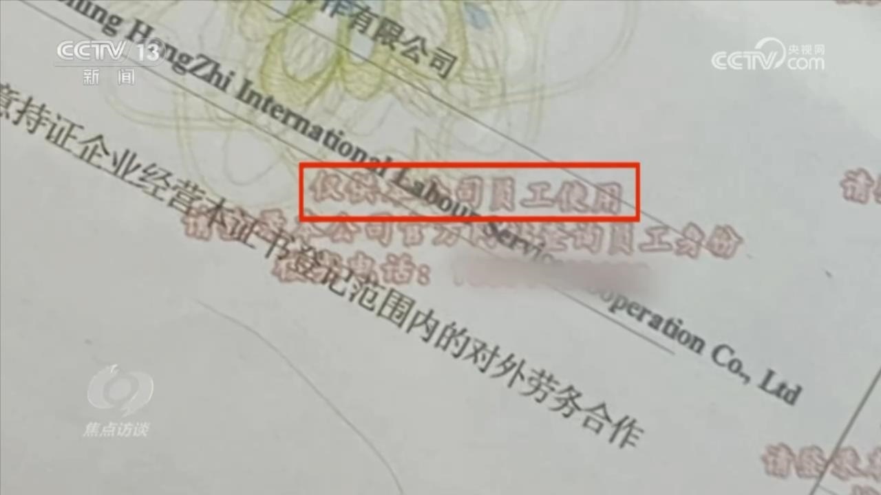 在辦公室擺放的證件是一家名為遼寧恒志國際勞務合作有限公司的對外勞務合作經(jīng)營資格證。為了防止別人冒用自己的資質,在證件上明確寫著“僅供本公司員工使用”,還印上了公司的核實電話。按照這個號碼,記者聯(lián)系了遼寧恒志國際勞務合作有限公司,公司負責人卻表示不認識眾國國際。