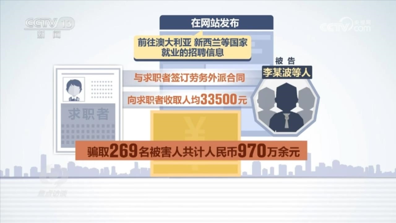 2023年5月,北京市房山區(qū)法院也判決了一起出國勞務詐騙案,被告李某波因詐騙罪一審判決13年6個月有期徒刑。判決書顯示:被告李某波等人冒用北京一家勞務派遣有限公司名義開展業(yè)務,在網(wǎng)站發(fā)布前往澳大利亞、新西蘭等國家就業(yè)的招聘信息,與求職者簽訂勞務外派合同,向求職者收取人均33500元的費用,最終騙取269名被害人共計人民幣970萬余元。檢察官還總結了這類詐騙案的幾個特點。