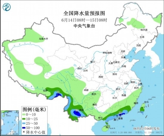 中新網(wǎng)6月12日電 據(jù)中央氣象臺網(wǎng)站12日消息,12-15日,華南、云南、貴州、西藏東南部等地部分地區(qū)有中到大雨,局地有暴雨或大暴雨。未來兩天,內(nèi)蒙古東部、東北地區(qū)、華北、黃淮、江漢、江淮、江南東北部等地有陣雨或雷陣雨,局地有短時強降水、雷暴大風(fēng)或冰雹等強對流天氣。