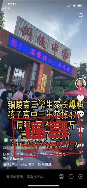 謠言:安徽銅陵一學生高中三年花費47萬元 高考考了369分?