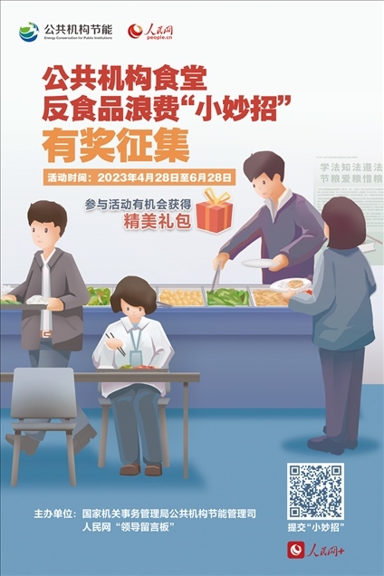 “推出小份菜”“飯菜稱重計價”“借助大數(shù)據(jù)合理備餐”……公共機構(gòu)食堂反食品浪費,你還有什么“小妙招”?4月28日起,國家機關(guān)事務(wù)管理局公共機構(gòu)節(jié)能管理司、人民網(wǎng)通過“領(lǐng)導(dǎo)留言板”聯(lián)合推出“公共機構(gòu)食堂反食品浪費‘小妙招’有獎?wù)骷被顒?,面向全社會征集黨政機關(guān)、學(xué)校、醫(yī)院等公共機構(gòu)食堂反食品浪費的妙招、實招、硬招?;顒油瞥龊螅鞯厝罕姺e極建言獻策,一起來看看吧!