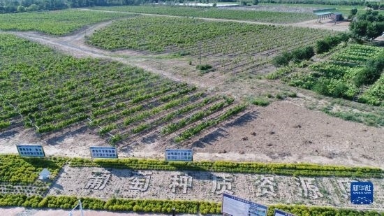 6月21日在河北省懷來縣拍攝的葡萄種質資源庫(無人機照片)。