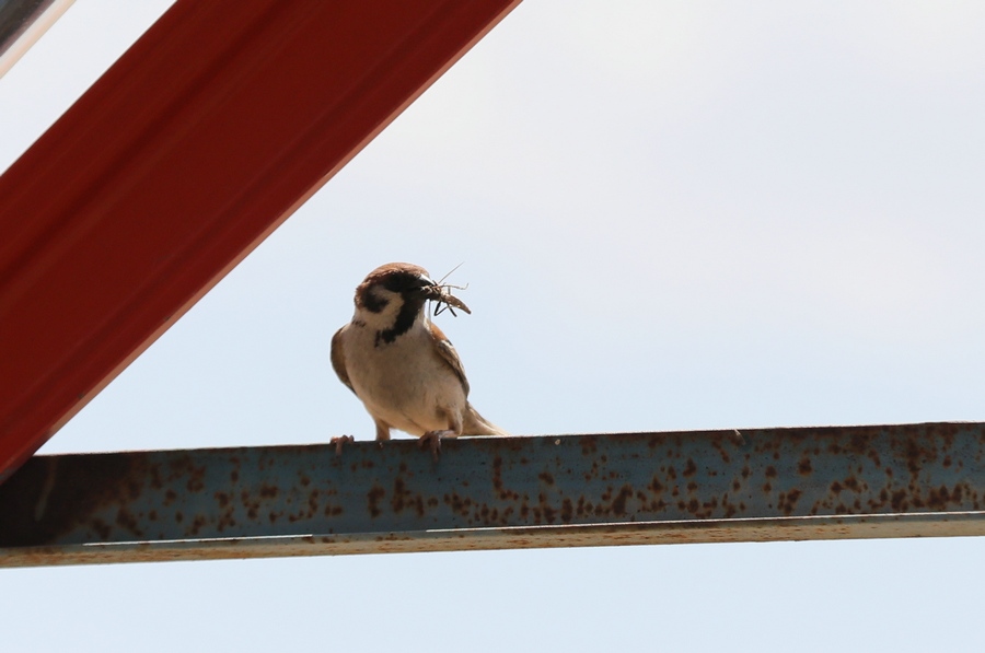 一只捕食的麻雀正在歇息。 記者 張楊攝影