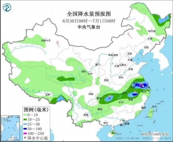 圖4 全國降水量預(yù)報(bào)圖(6月29日08時(shí)-30日08時(shí)) 圖自中央氣象臺網(wǎng)站