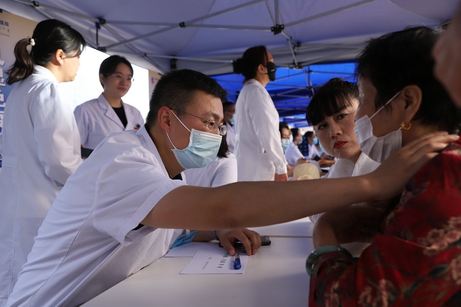 專家們?yōu)榍皝韱栐\的群眾,提供免費的咨詢檢查診療服務(wù),宣傳健康知識,提高群眾對常見病、慢性病的防控意識,以實實在在的方式為老百姓看病就醫(yī)解決實際問題。 謝凱隆 攝影報道