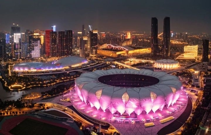 比如充滿想象的場館設(shè)計。錢塘江畔的“大蓮花”,其建筑體態(tài)源于錢塘江水的動態(tài),給人以震撼的同時,也“盛放”出浙江的文化底蘊和藝術(shù)魅力;“水?!杯h(huán)繞的手球館,外觀別具一格,“條條水幔”垂落很是吸睛;以“杭州傘”為造型的曲棍球場,則詮釋出江南古典美學(xué)十足的浪漫韻味。