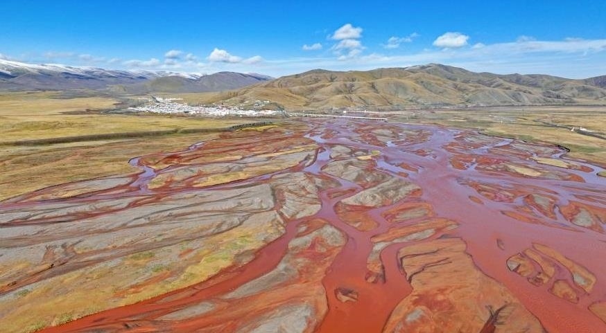 青海玉樹:楚瑪爾河水位下降 河道蜿蜒似大地“脈絡(luò)”。