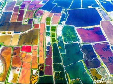 2023年7月5日,山西運城,七彩鹽湖色彩斑斕。